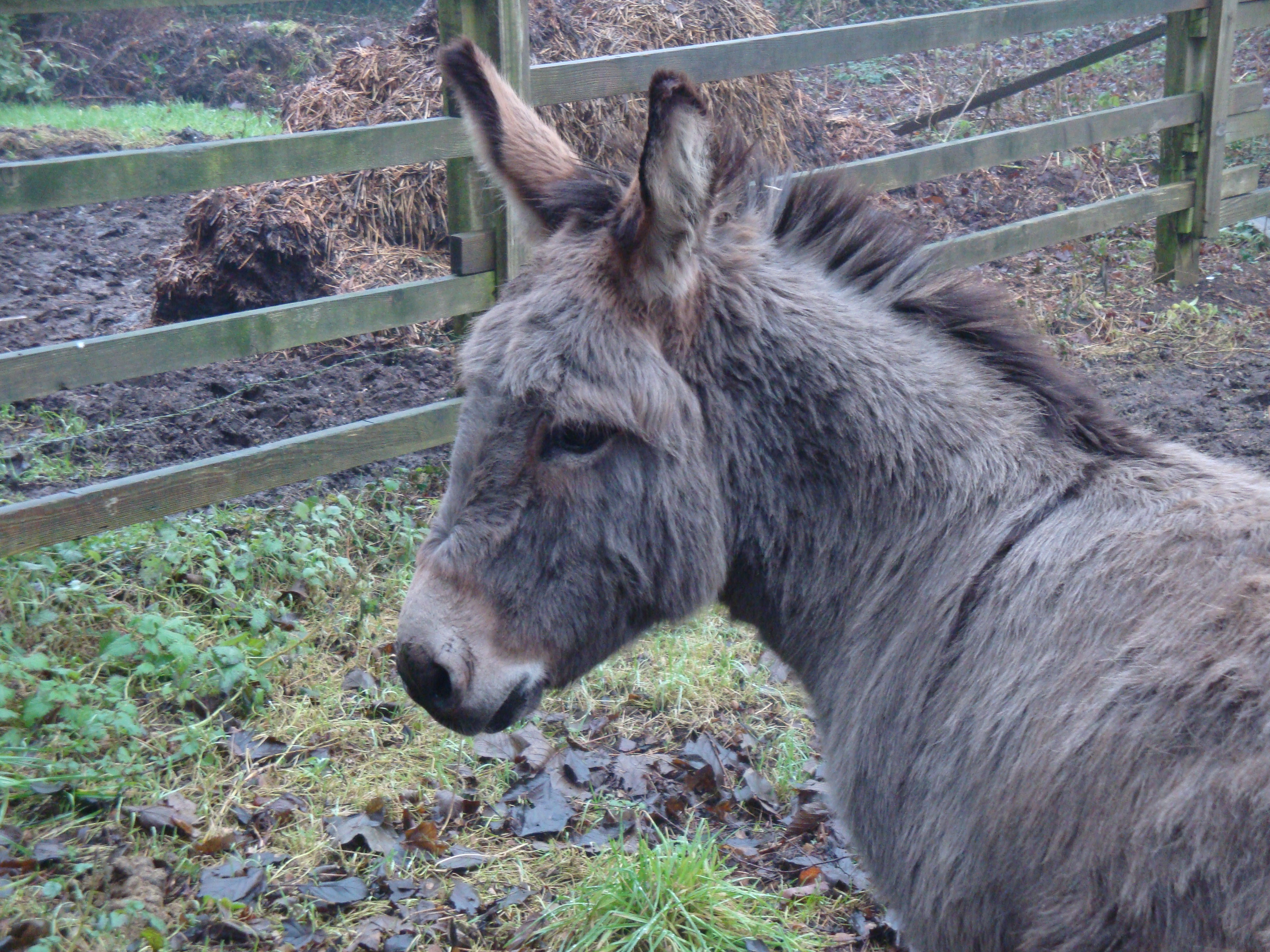 Our walk quickly took us out of Cirencester along public footpaths toward the village of Stratton. We paused to say hello to a couple of friendly donkeys who wandered over to the fence of their paddock to greet us. One was a very cute little brown fellow who whiffed and sniffed expectantly at our hands in the hopes that we came bearing treats, but when I asked him if he’d make us some waffles he gave me a donkey look which said, “Like I’ve never heard that one before.”