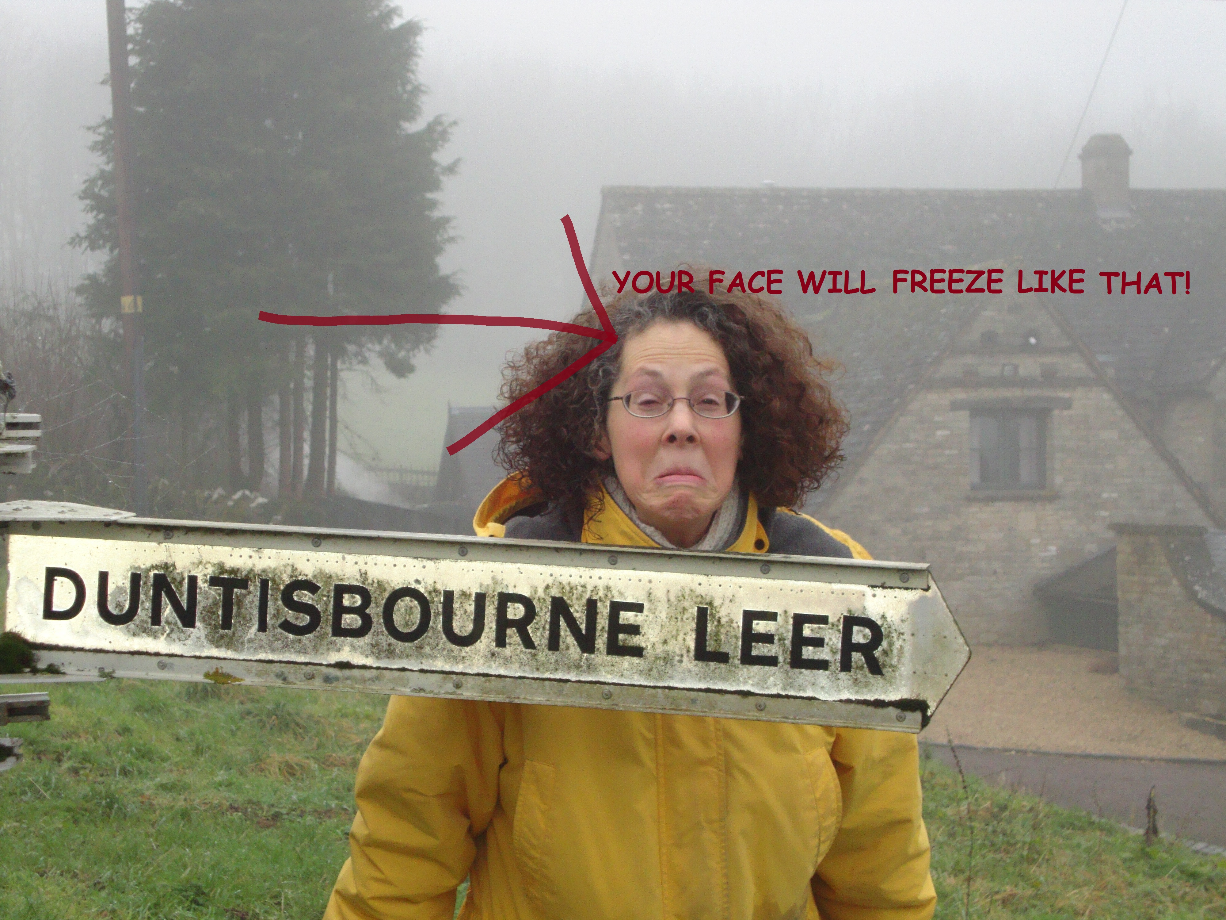 Now, every time we pass the sign for Duntisbourne Leer we shoot each other the most violent of looks, no doubt causing other passing motorists to think we are both in terrible tempers, but we can never hold the nasty faces very long before laughter overtakes us. It helps to break up the monotony of the journey.